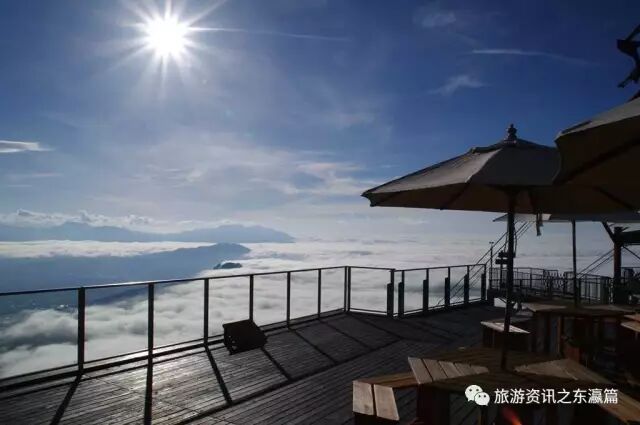 云海出现的时候,也只在这个时候,你才可以看到广阔的白色云海和蓝色的天空,那种神圣的圣光洒在身上的感觉,让你的感动无法抑制。如果你来龙王山公园一定要来日光露台体验一番,绝对会令你感觉进入了另一个世界般的美好。